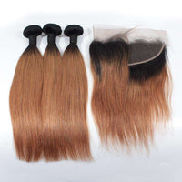 - Human Hair Bundles With Top Lace Closure 2 Tone 1B/30 Ombre Hair Silky Straight Hair 10A