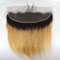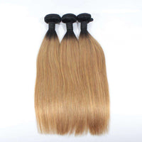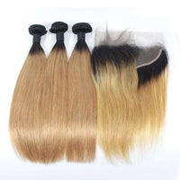 - Human Hair Bundles With Top Lace Closure 2 Tone 1B/27 Ombre Blonde Hair Silky Straight Hair 10A