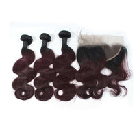 - Human Hair Bundles With Lace Frontal Closure 2 Tone 1B/99 Ombre Hair Body Wave 10A