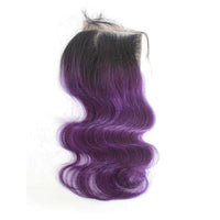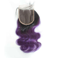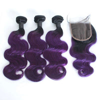 • Human Hair Bundles With Top Lace Closure 2 Tone 1b/Purple Ombre Hair Body Wave 10A
