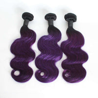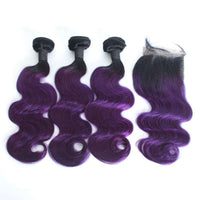 1B/Purple Human Hair Body Wave 3 Bundles Weaving Hair With Top 4X4 Lace Closure Ombre 2 Tone Hair