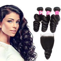 Brazilian Virgin Hair Loose Wave Bundles With 4X4 Lace Closure