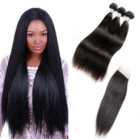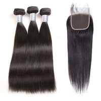 - 【Package: Straigjt Hair 3 Bundles with Lace Closure 4x4inch, Pack of 4pcs.】