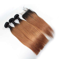 - Human Hair Bundles With Top Lace Closure 3 Tone 1B/30 Ombre Remy Hair Silky Straight Hair 10A