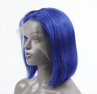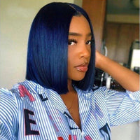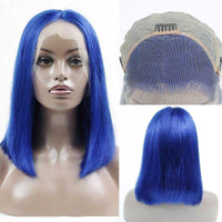 - Short Bob Wig Blue Human Hair Lace Front Wig Pre Plucked with Baby Hair 150% Density Glueless Straight Brazilian Remy Colored Bob Wig.