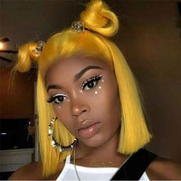 Lace Front Wigs Bob Human Hair Yellow Short Cut Bob 150% Density