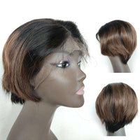 Pixie Human Hair Wigs Ombre 1b/30 Brown Lace Front Wigs Straight Africa American Wigs