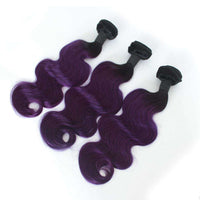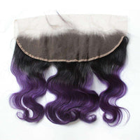 • Human Hair Bundles With Lace Frontal Closure 2 Tone 1B/Purple Ombre Hair Body Wave 10A