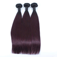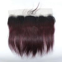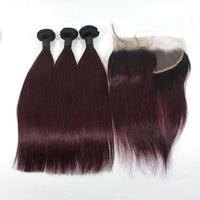 Ombre 1B/99j Burgundy Brazilian Silky Straight 3 Bundles With Lace Frontal Free Part Straight Hair