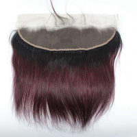 • Human Hair Bundles With Lace Frontal Closure 2 Tone 1B/99 Ombre Hair Silky Straight 10A