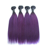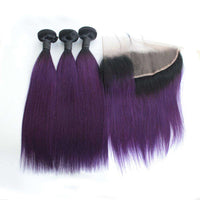 1B/Purple Straight Hair Bundles With Lace Frontal Ombre Dark Root
