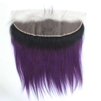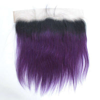 • Human Hair Bundles With Lace Frontal Closure 2 Tone 1B/Purple Ombre Hair Silky Straight 10A